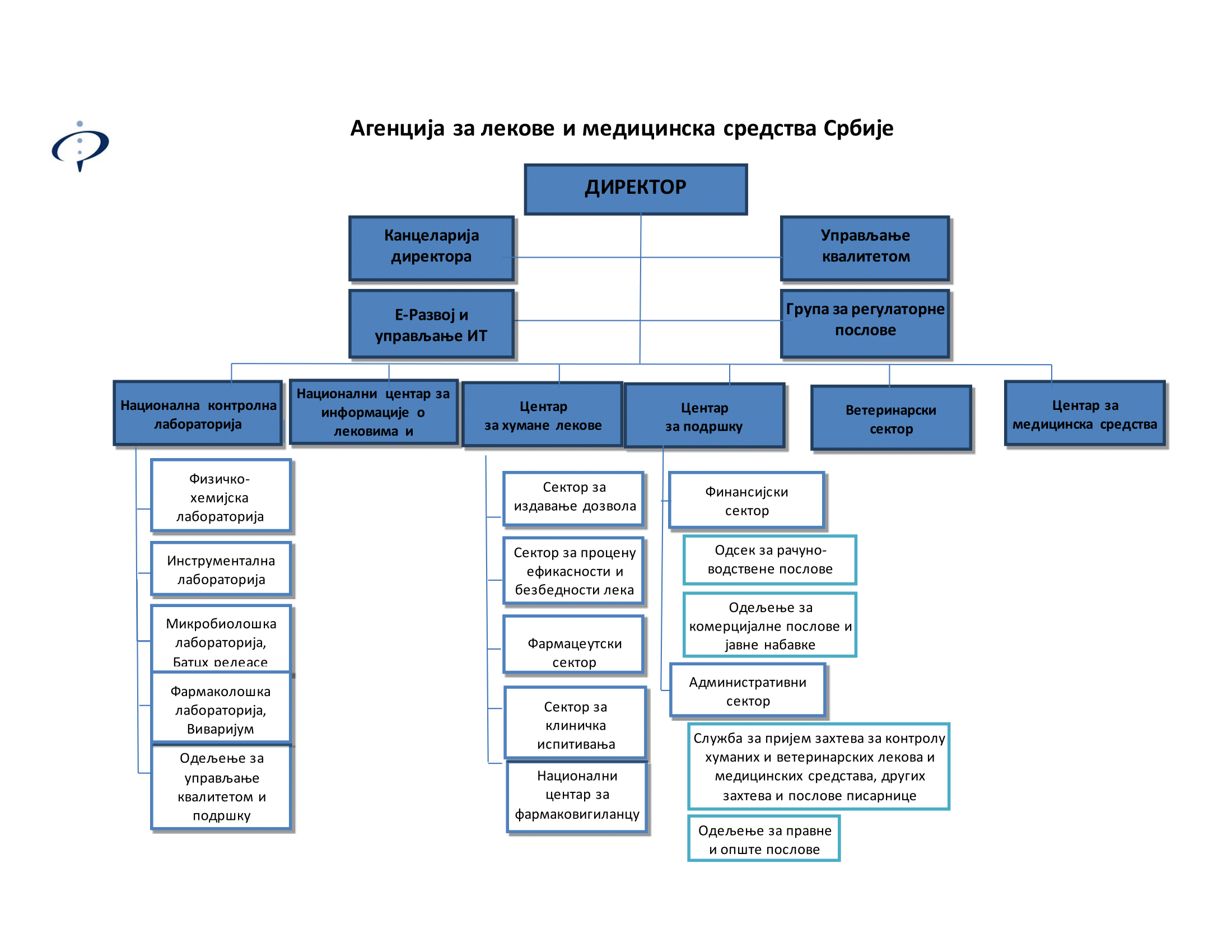 У Агенцији за лекове и медицинска средства Србије (АЛИМС), ради обављања сродних, међусобно повезаних послова, постоје: